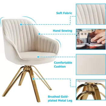 Mid-Century Modern Swivel Desk Chair with Gold Legs, No Wheels, Velvet Upholstery