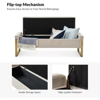 Upholstered Storage Ottoman Bench with Gold Metal Legs for Bedroom & Hallway
